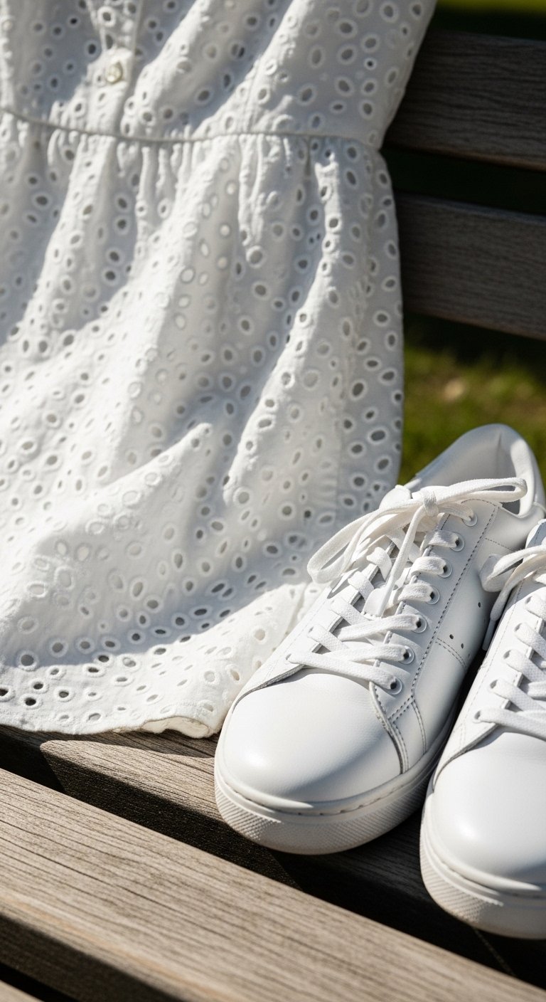 An insight I rely on: if you want elongation, choose a shoe color close to your skin tone rather than stark white. Small mistake: wearing scuffed white shoes with a pristine outfit. White only reads intentional if it’s clean and cared for.