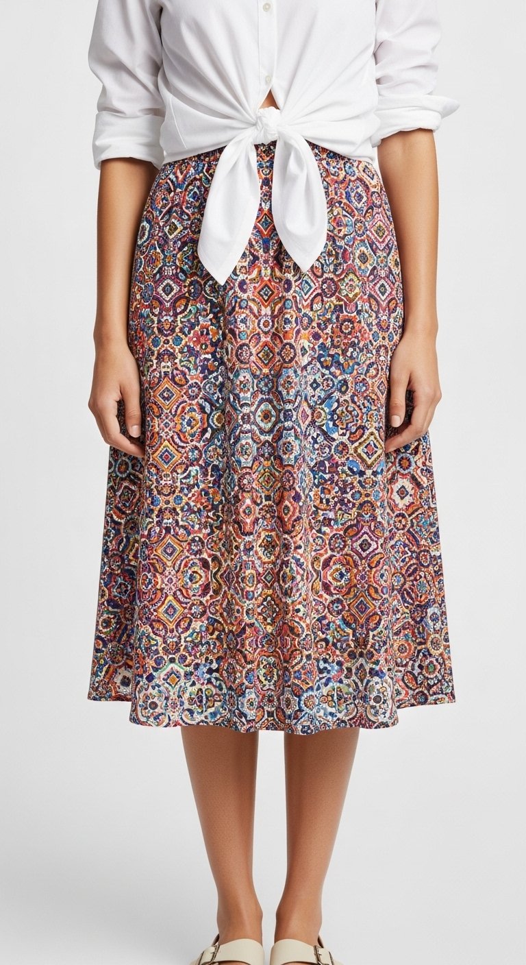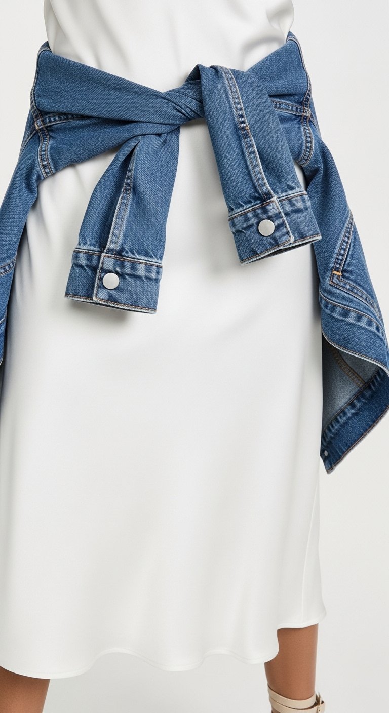 I learned to choose a matte shirt to balance the satin; too much sheen looks costume-y. A knot at the hem makes it casual.