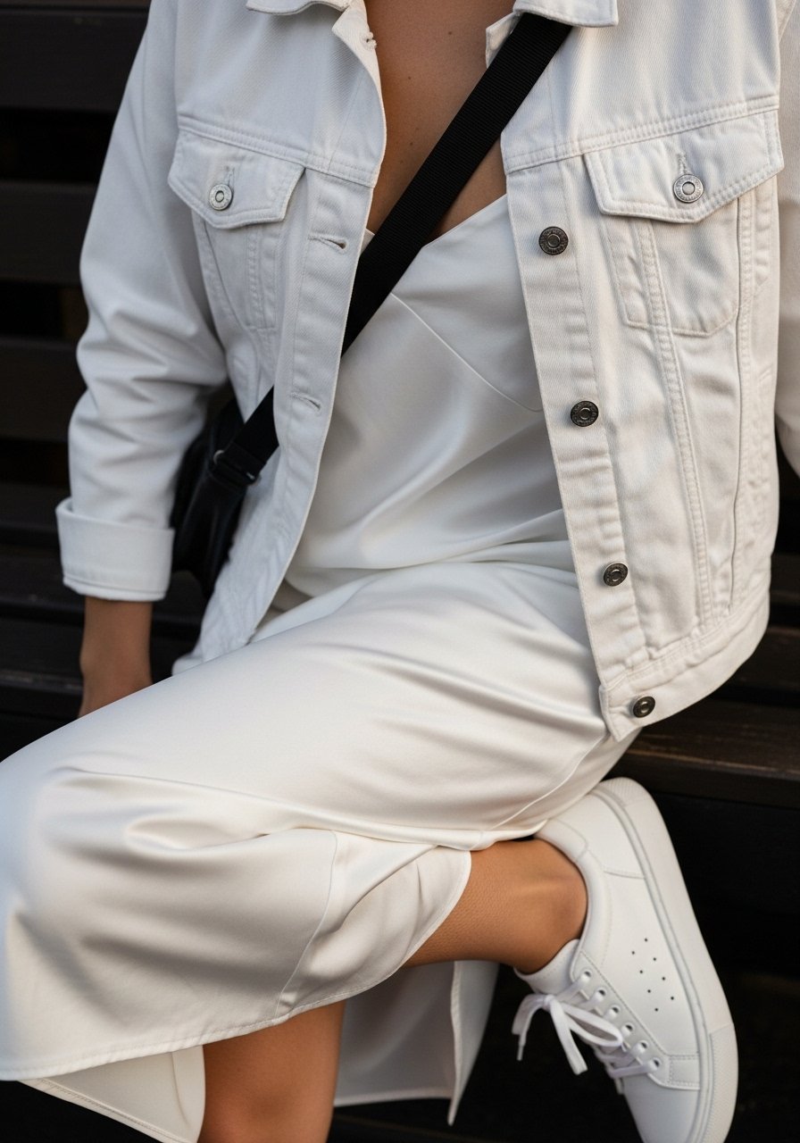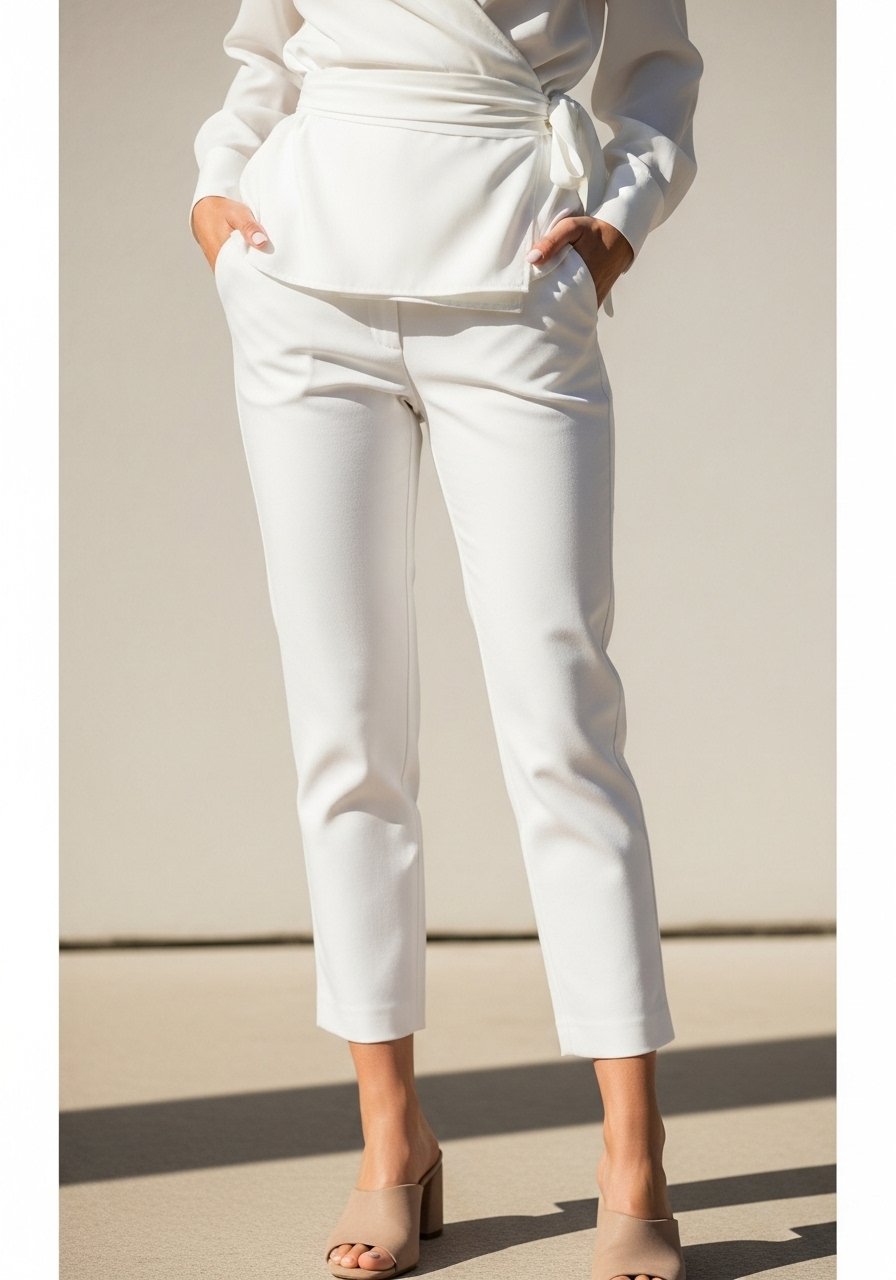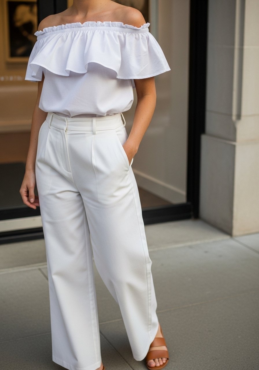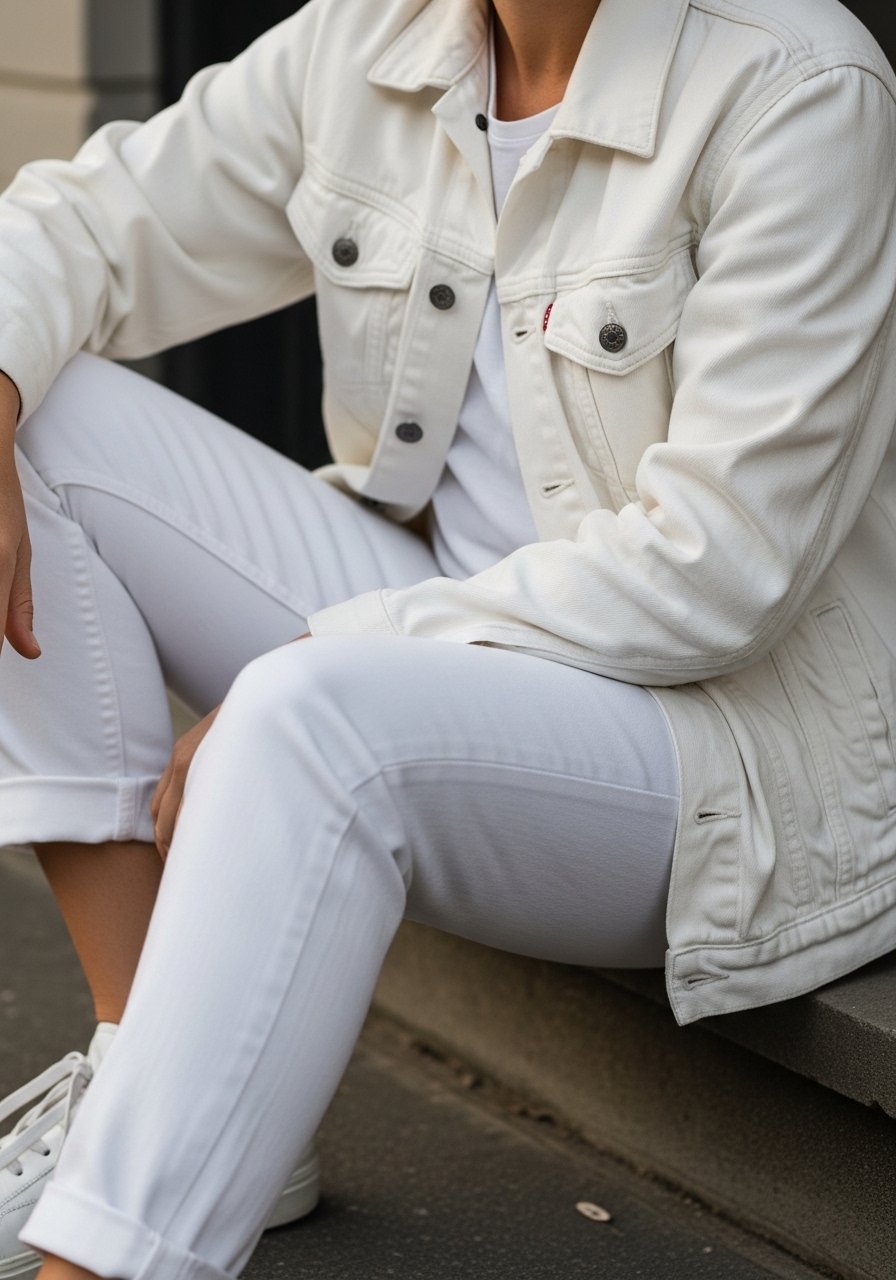 An insight I use: mixing slightly different whites and textures (matte cotton with a soft crepe blazer) keeps the look layered yet cohesive. Mistake to avoid: wearing a blazer that’s too long and boxy with slim trousers—it kills proportion.