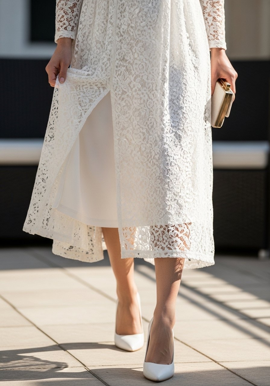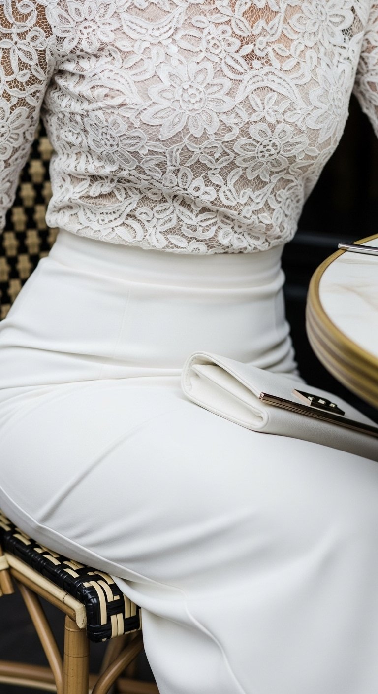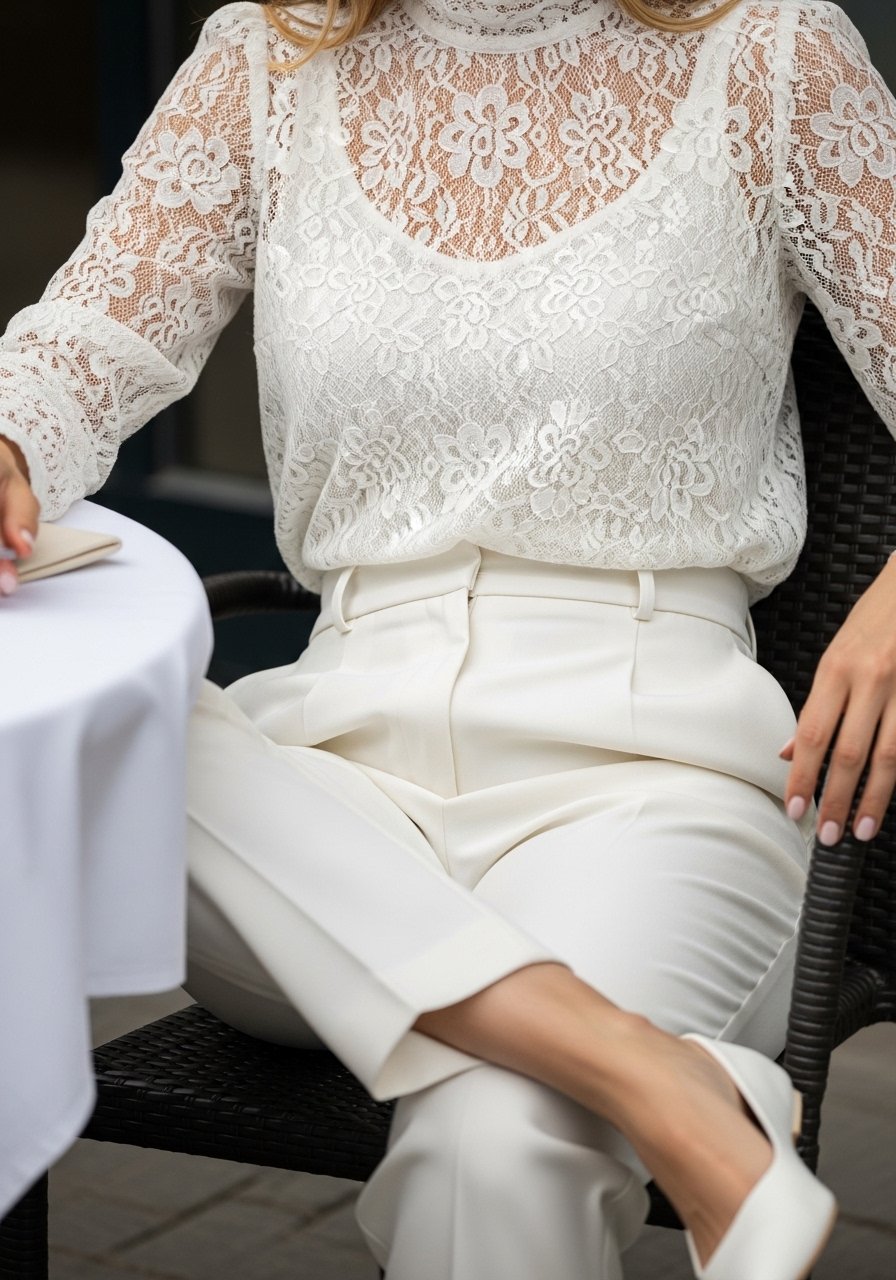 Lace adds a softer, feminine texture to white outfits. On me, it reads dressy but not fussy.