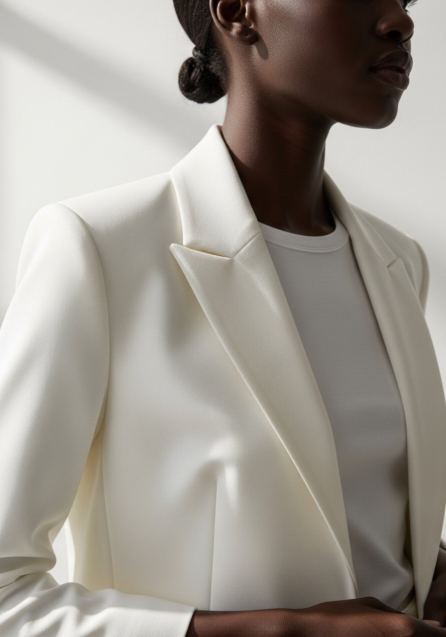 I put on a structured blazer or a clean-cut jacket next. I pay attention to where the shoulder seam hits—right at my shoulder is non-negotiable. That single line creates intentionality. Structure brings a visual frame to the white, so it stops reading like a costume and starts reading like an outfit.