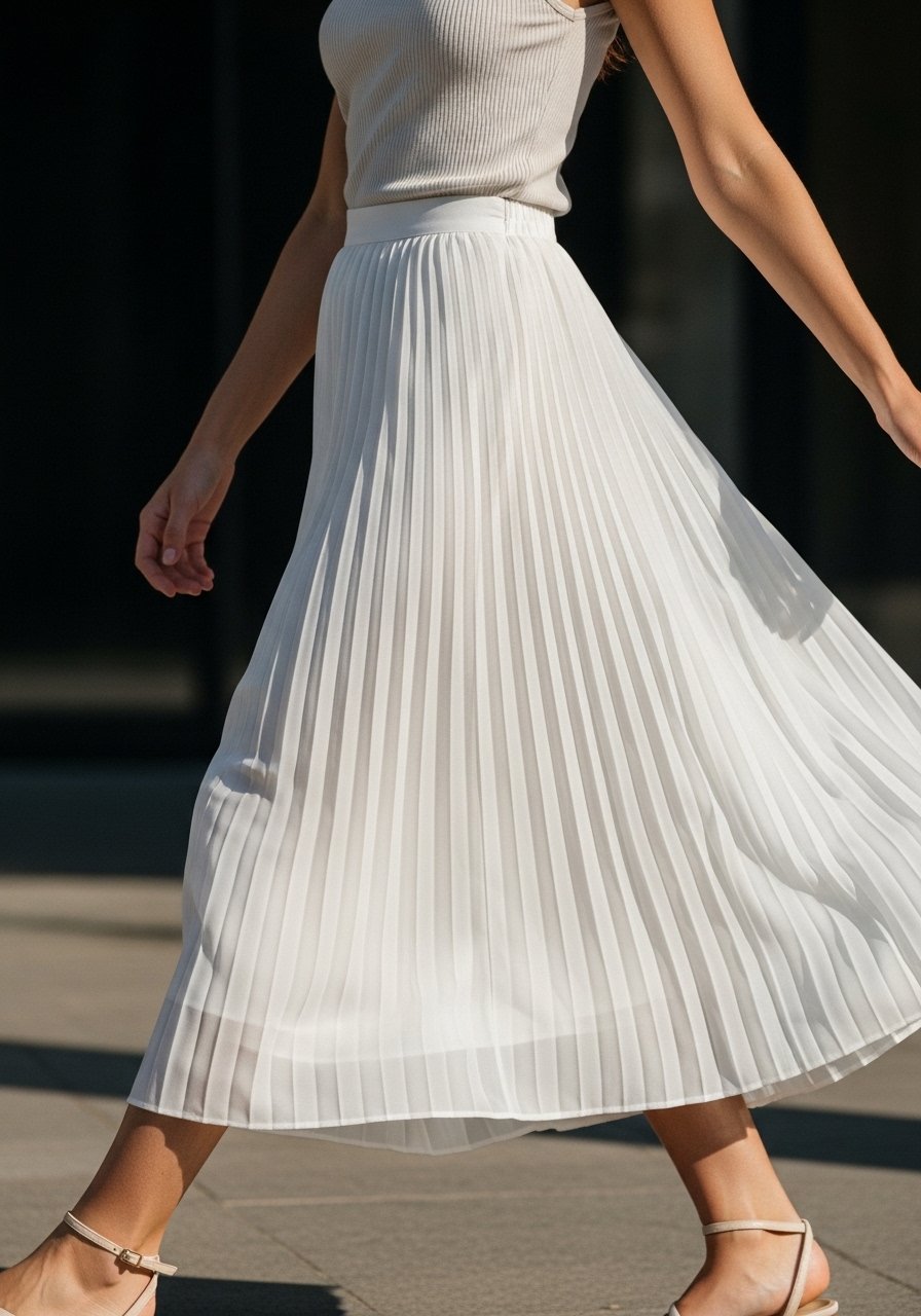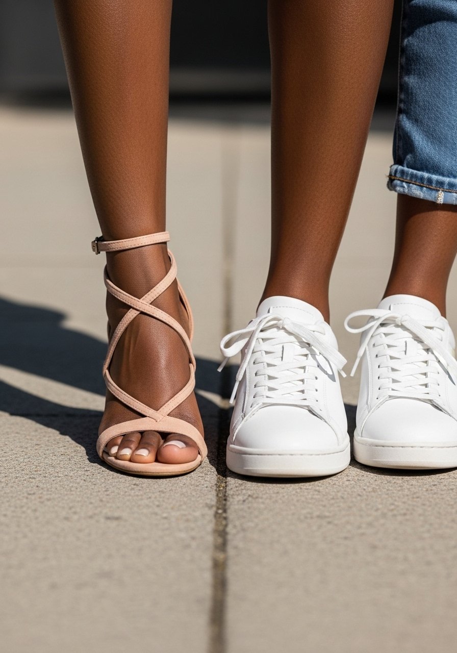 I pick shoes that anchor the look. Nude heels lengthen and keep things polished. Clean white sneakers make the outfit relaxed and modern. The right shoe changes how the whole outfit reads—dressy, casual, or somewhere between.