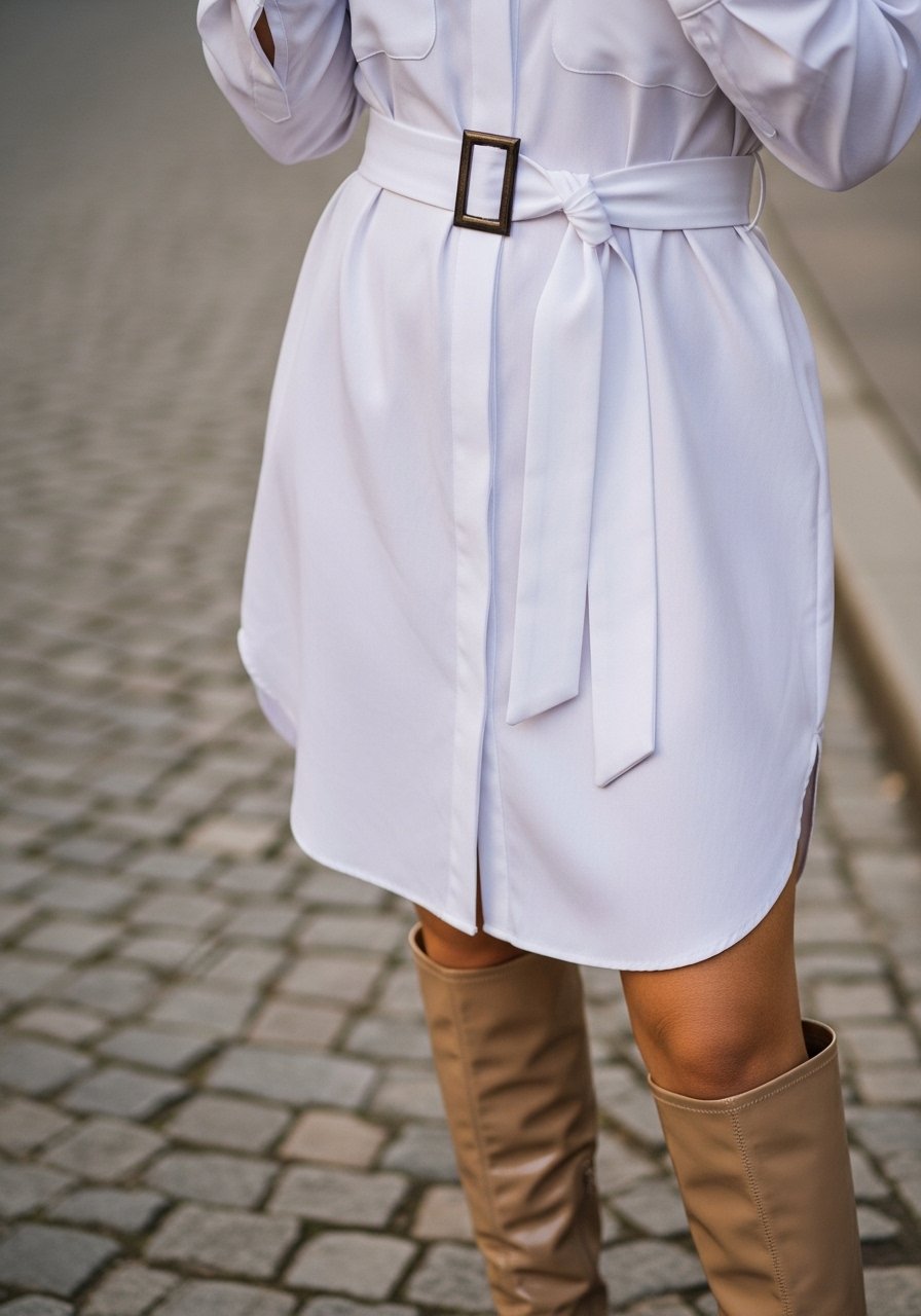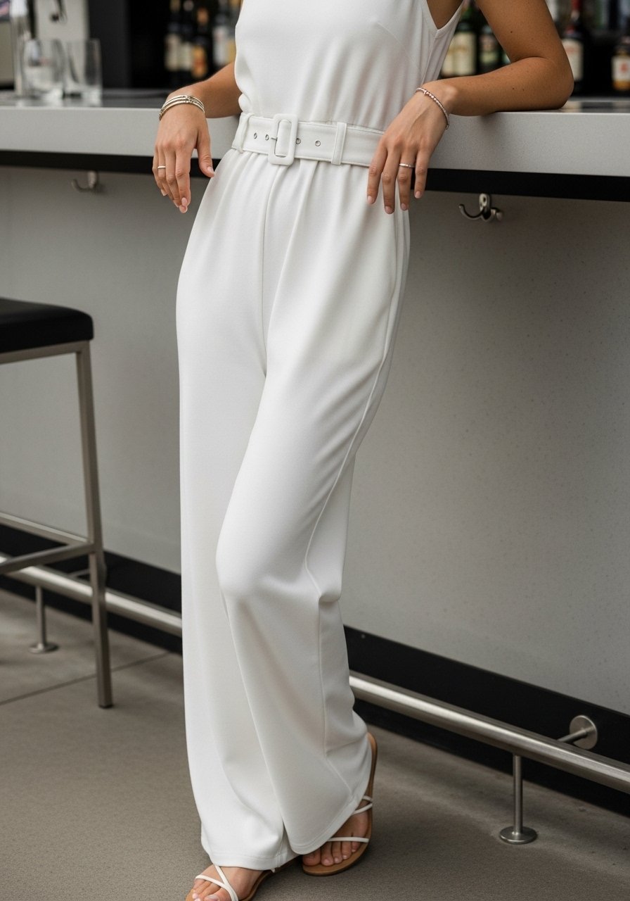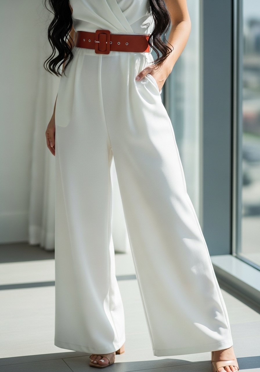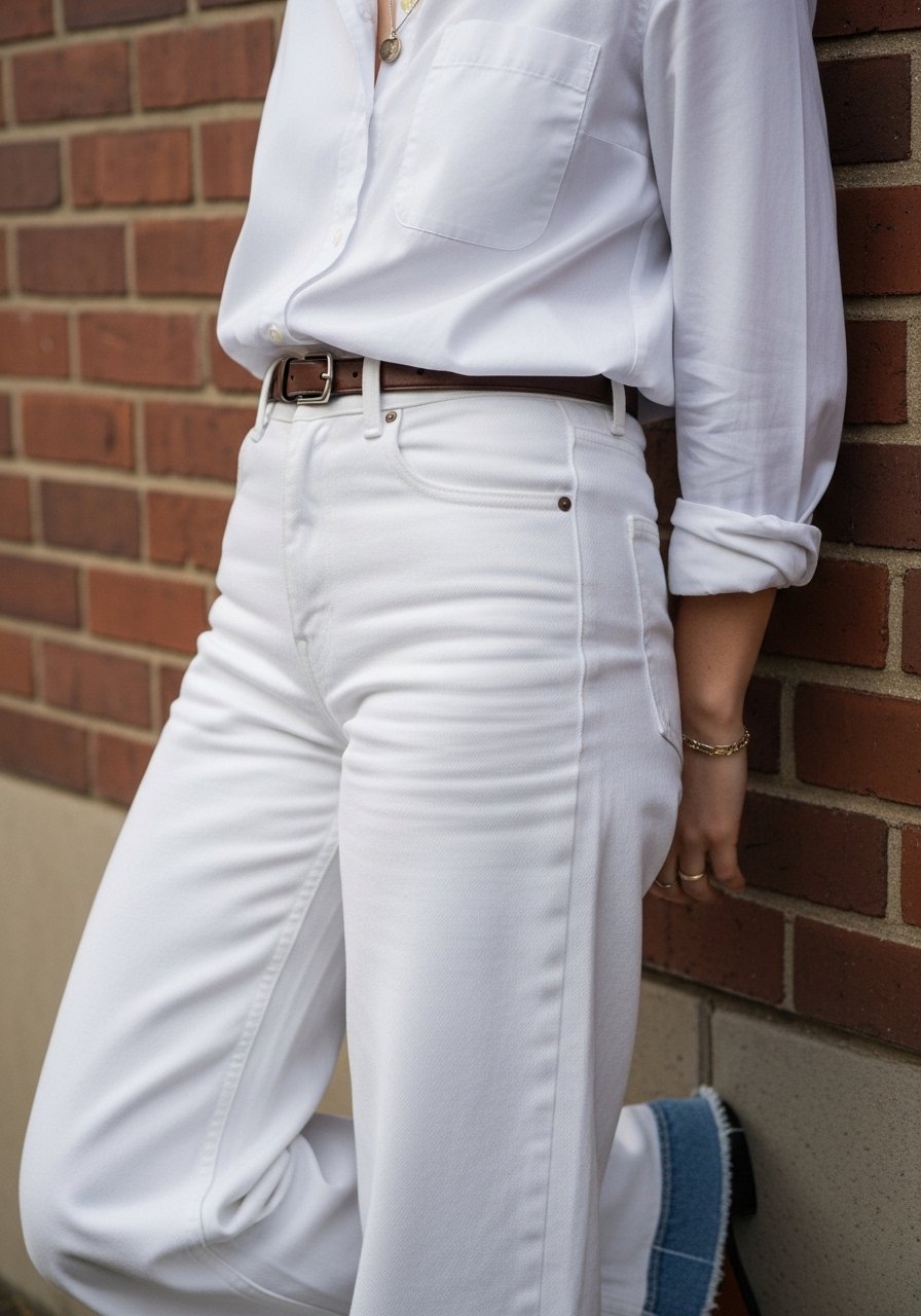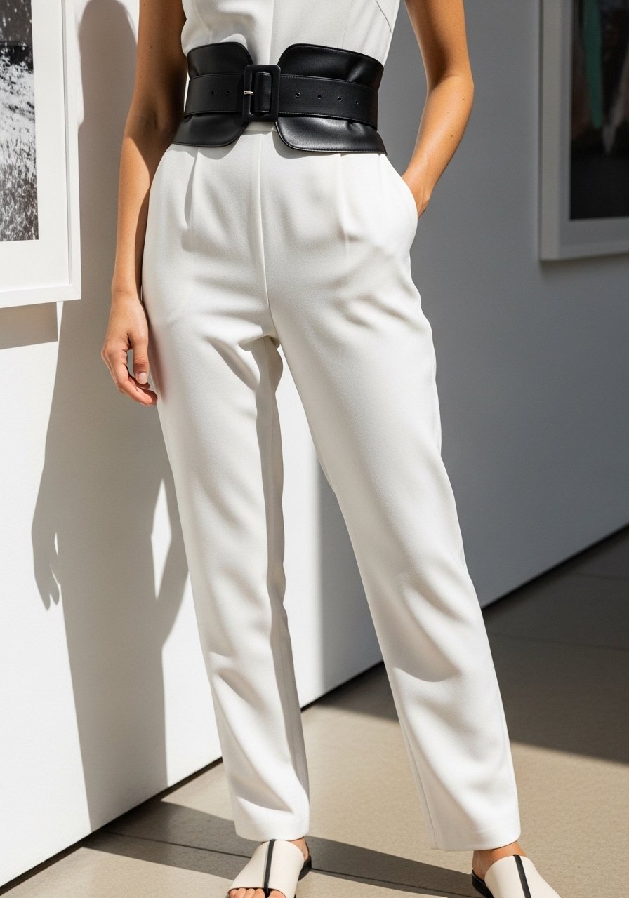 People often miss the power of small contrast at the waist; it reads like tailoring and prevents the look from floating. Avoid a belt that’s too wide or too dark; it can dominate and break the fluidity of white.