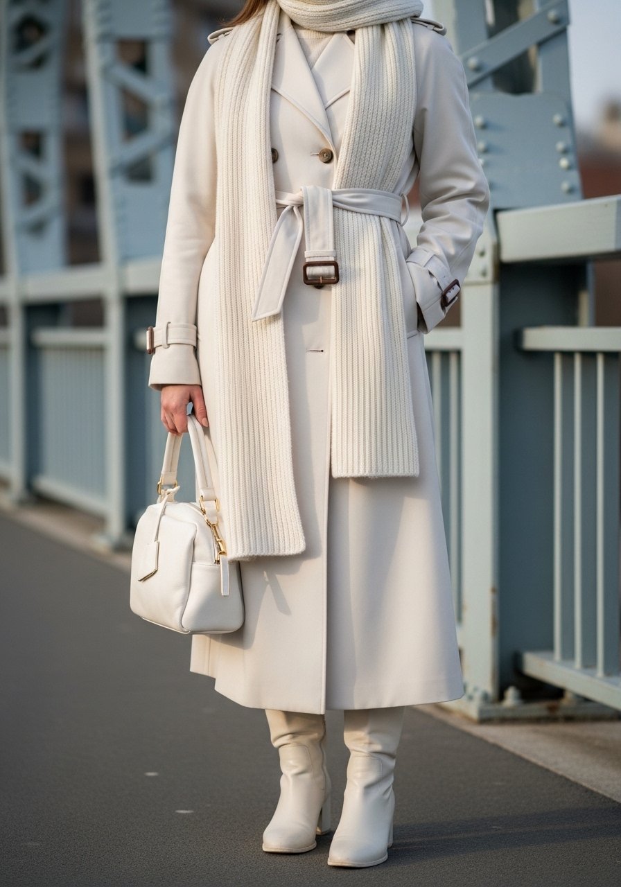 A long trench makes a statement without overcomplication. I like to match accessories for a cohesive, minimal look.