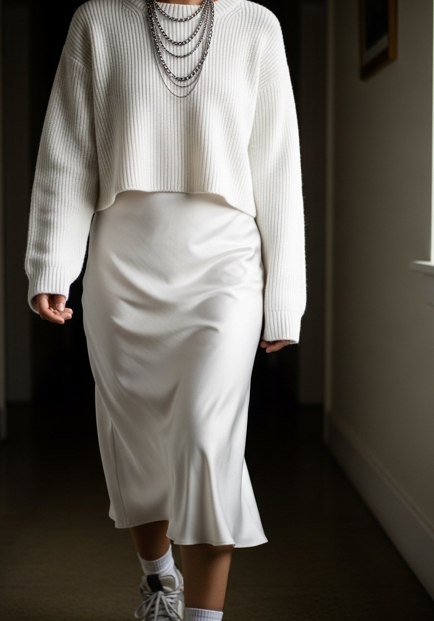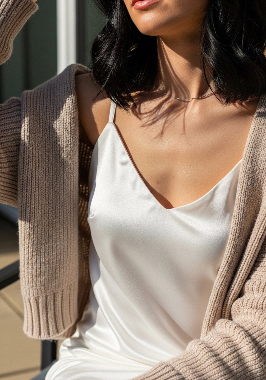I watch undertones. Whites lean warm or cool, and on my skin a slightly warm white reads richer. I mix matte and slightly lustrous fabrics to add depth without loud color.