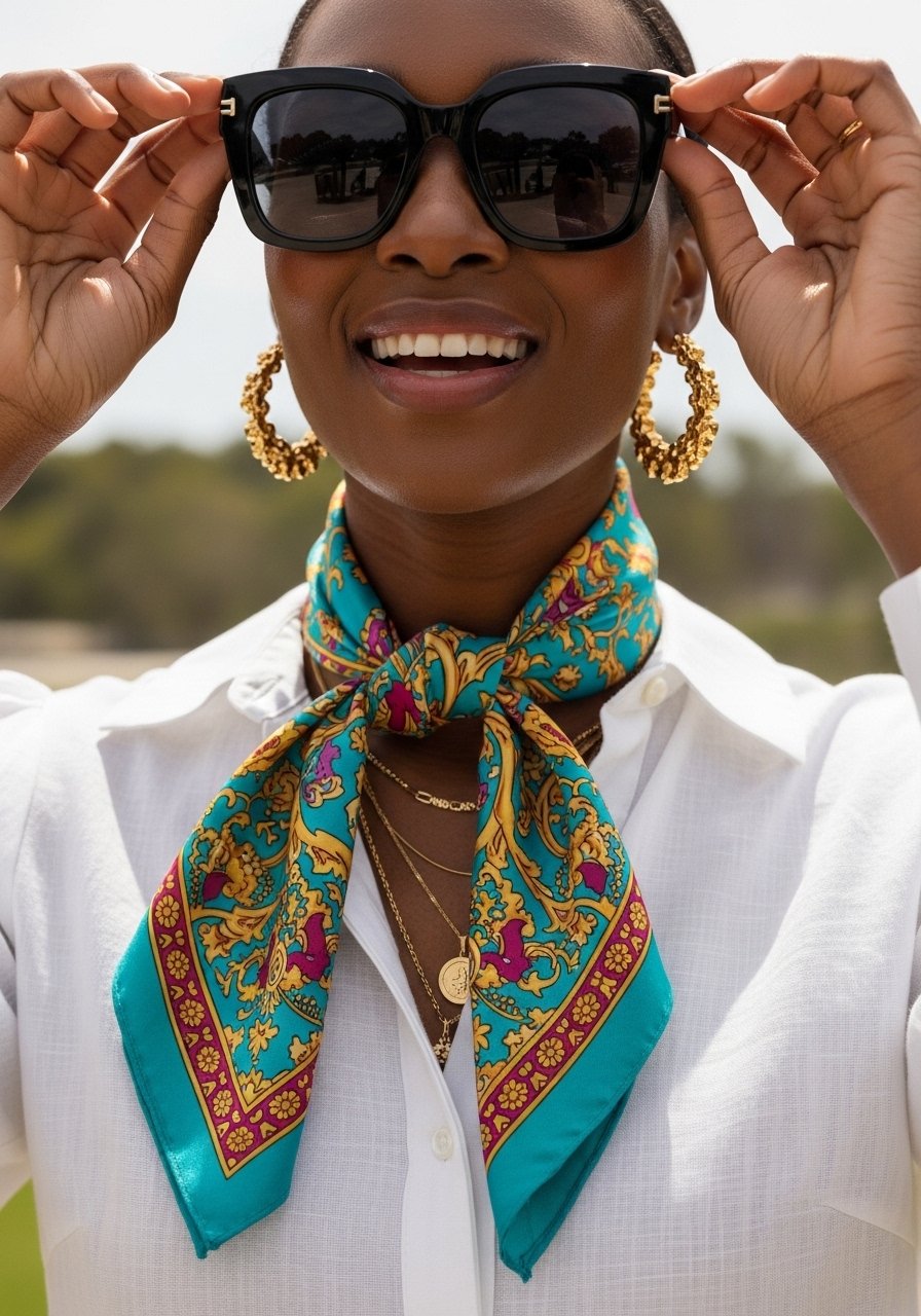 I check sunglasses, a silk scarf, nails, and lip color last. Sunglasses add edge. A small scarf at the neck or bag handle introduces subtle pattern. Nails and lip color echo the anchor tone.