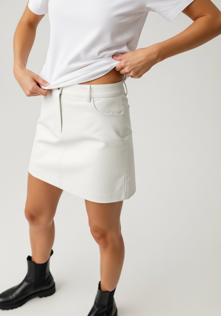 20. Shirt-Tucked White Tee with Leather Mini Skirt